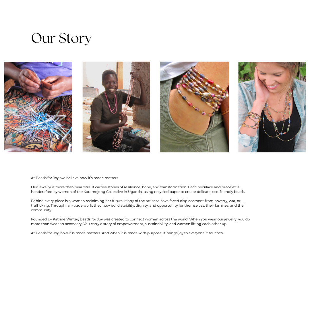 From recycled paper to delicate jewelry, Beads for Joy empowers women artisans in Uganda to transform their lives through craft. Each piece carries a story of resilience and hope, showing how beauty can truly change lives.